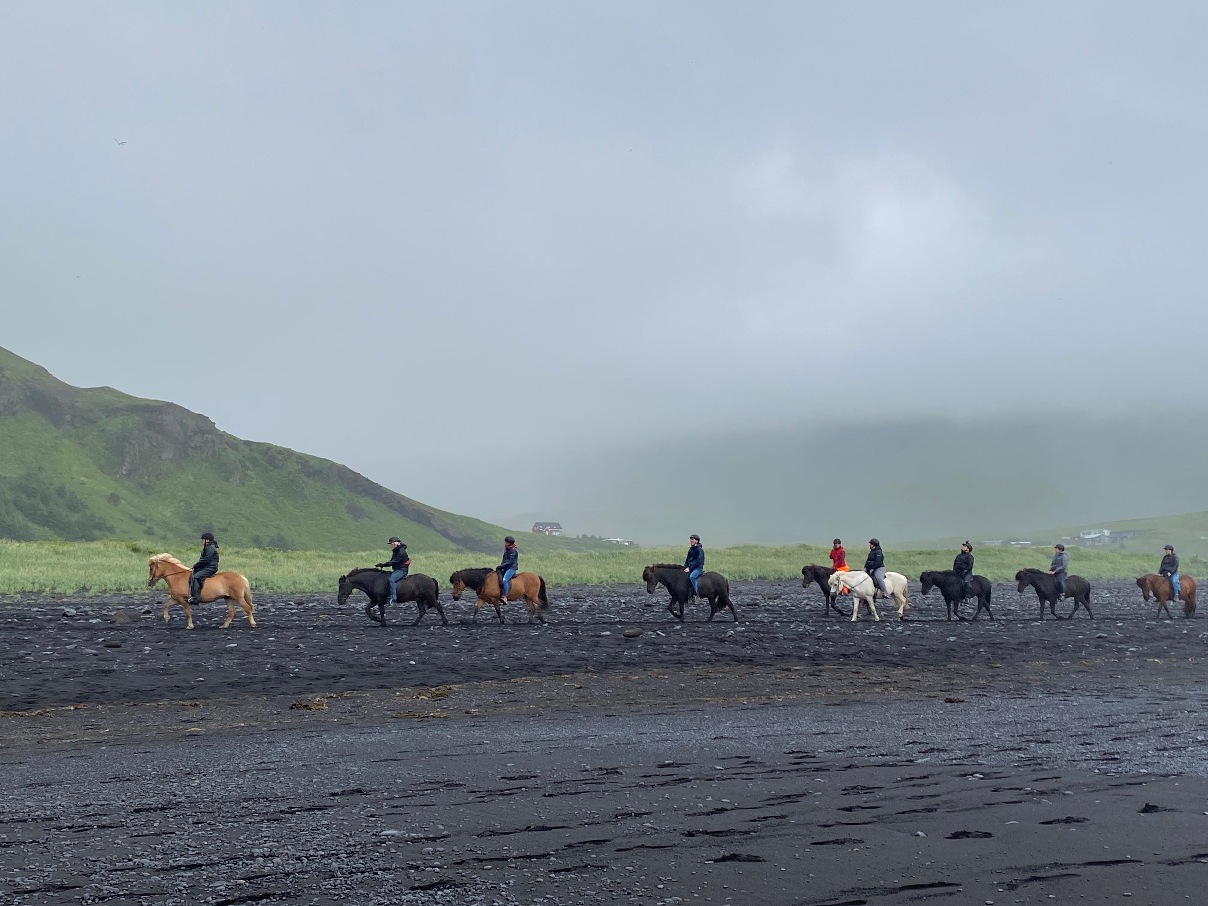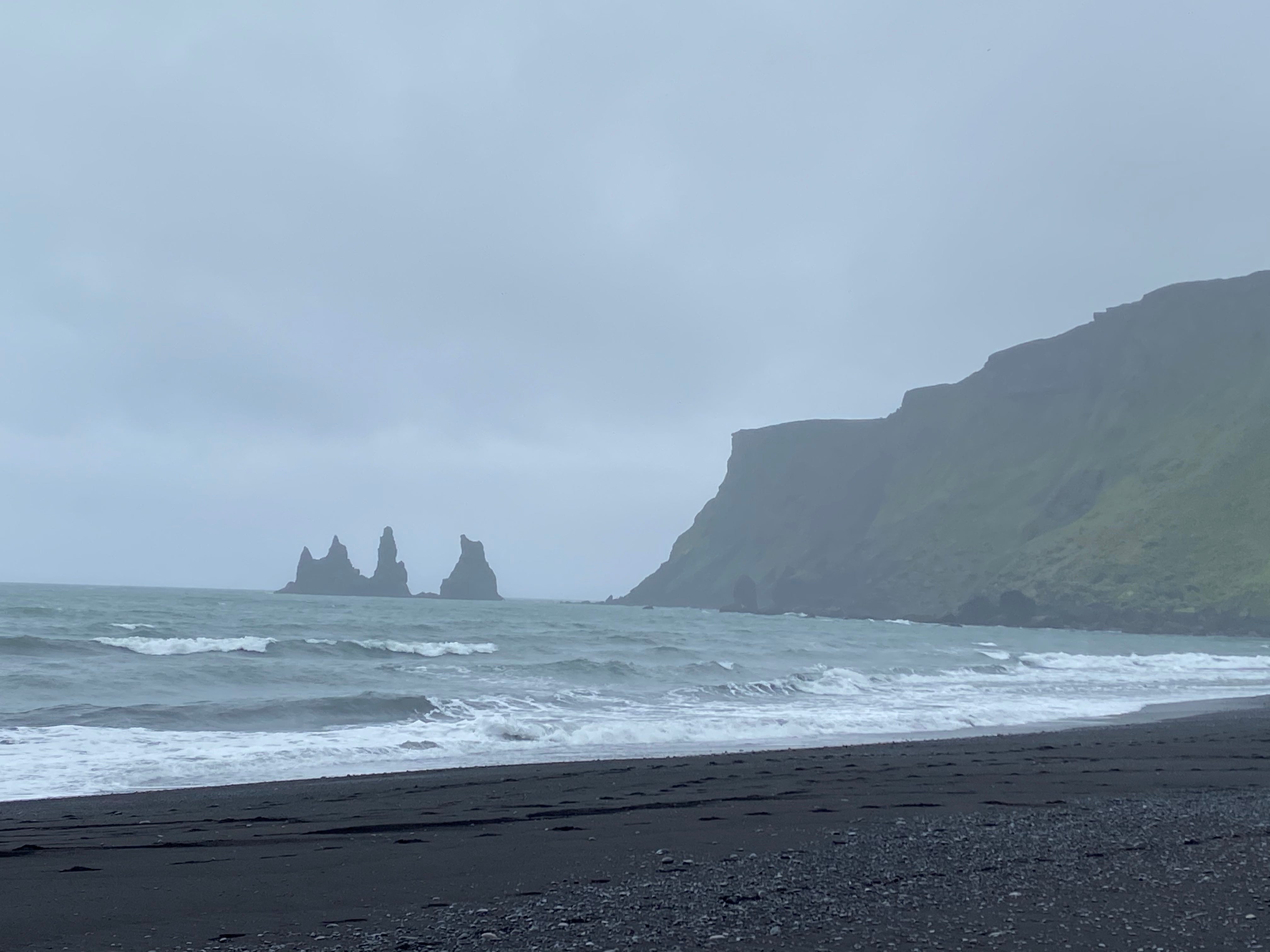 As an avid birder, I found opportunities to observe arctic tern, white wagtail, redwing thrush (similar to our robins), barnacle geese, and Eurasian oystercatchers. However, Atlantic puffins evaded us until our last full day. We had pulled off to walk a black sand beach on the south coast, following the tracks of Icelandic ponies on a trail ride. There, in the swell of waves, we saw sixty or so of the little birds and watched them fly to and from rugged bluffs above the bay. I had assumed we would only see them if we took a ferry out to their nesting grounds on the Vestmannaeyjar islands, and was delighted to observe these colorful cousins to our horned and tufted puffins.